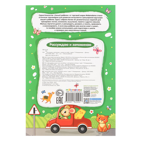 Серия блокнотов "Умный ребенок" от Malamalama, станет отличным тренажером для развития интеллекта и расширения кругозора вашего ребенка. Здесь собрано более 65 увлекательных заданий для тренировки логики, внимания, мышления, памяти и других навыков. Малыш научится думать и рассуждать, рисовать и писать, сравнивать и анализировать, а также использовать как пособие для подготовки к школе и проверке уже накопленных знаний. Размер: 14.4х21 см. 32 страницы. 5 дизайнов на выбор.