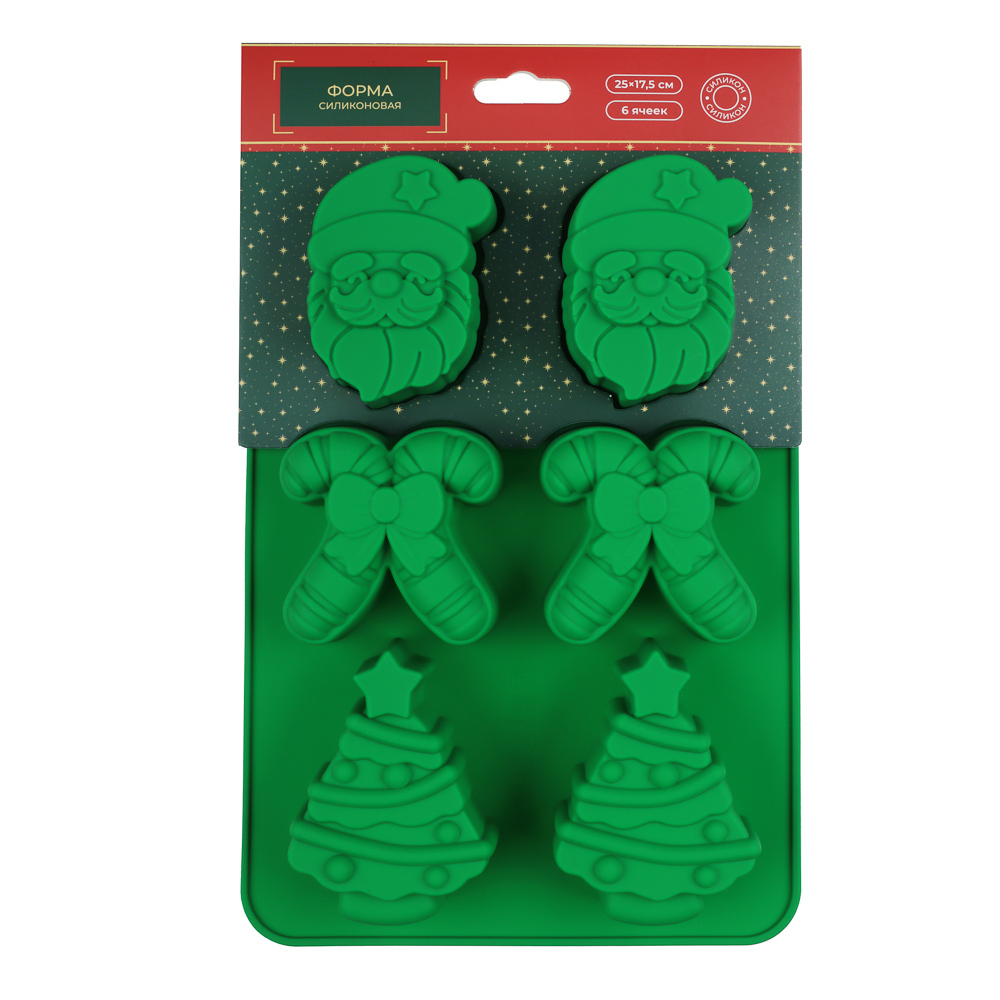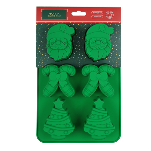 Форма силиконовая "Новогодняя коллекция Щелкунчик" на 6 ячеек, 25х17.5 см, идеально подходит для приготовления праздничной фигурной выпечки: мини-кексов, капкейков, маффинов, шоколадных фигурок и даже новогоднего льда. Фигурные тематические десерты станут украшением стола и поднимут настроение каждому гостю. Силиконовая форма обладает антипригарными свойствами, а готовые изделия легко извлекаются, сохраняя идеальную форму. Не деформируется при использовании в диапазоне температур от -40°C до +230°C. Подходит для использования в духовке, морозилке, микроволновке и для мытья в посудомоечной машине. Перед первым использованием вымыть и смазать маслом. Не пользуйтесь острыми предметами, не разрезайте выпечку прямо в форме. Не ставьте форму на источник нагрева – газовую или электрическую конфорку. Не ставьте пустую форму в разогретый духовой шкаф.