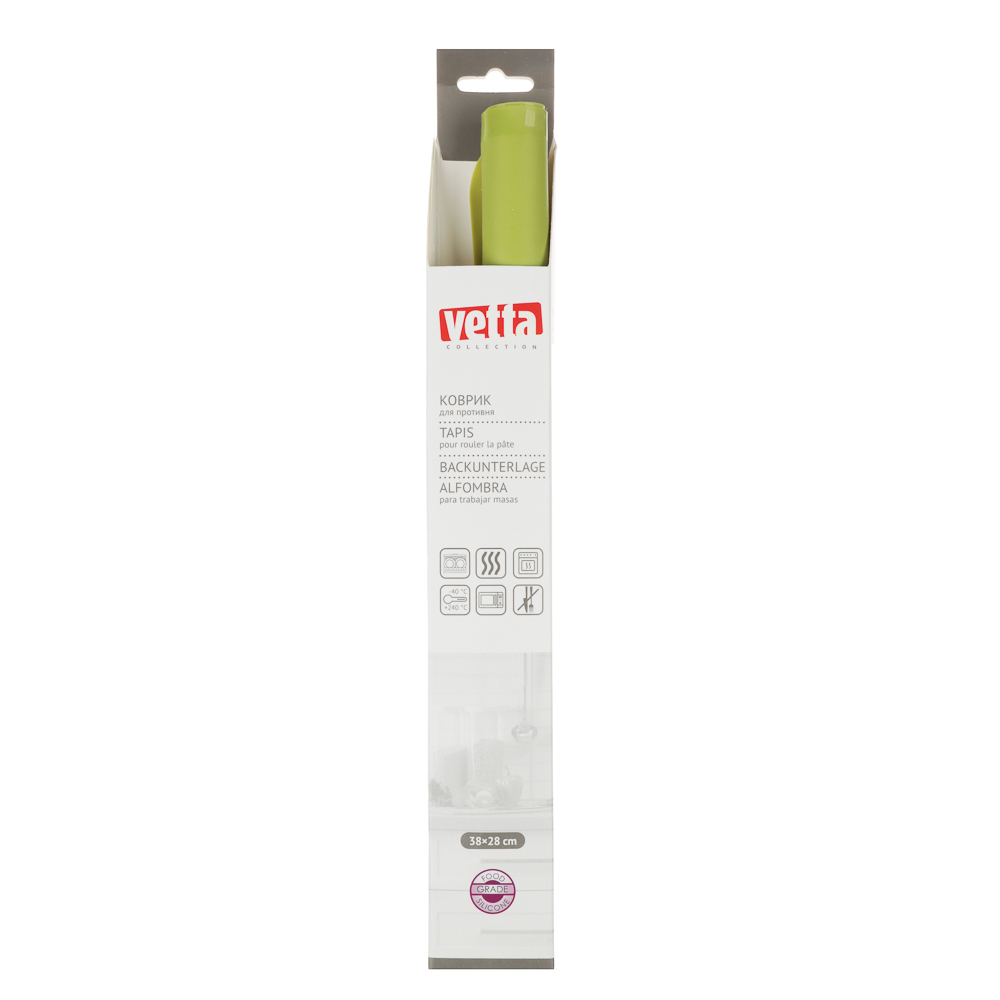 Силиконовый коврик Vetta предназначен для выпечки изделий из теста в духовых шкафах для противня размером 38х28х0,1 см. Коврик является многофункциональным и обладает большим рядом свойств: мягкий, пластичный материал, который защищает столешницу от повреждений; возможность использовать как подставку под горячее, возможность выпекать в духовке без использования масла. Также силиконовый коврик подходит для хобби и творческих занятий с детьми, ведь к нему не прилипает тесто, а также он легко моется и не впитывает запахи. Не скользит, плотно прилегает к поверхности стола, положенная сверху разделочная доска также перестает скользить.