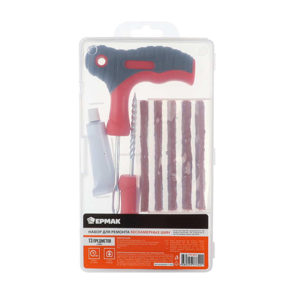 Набор для ремонта бескамерных шин со жгутами позволяет быстро и эффективно устранить прокол и продолжить поездку. При проколе менее 6 мм ремонт можно провести прямо на обочине без демонтажа покрышки. Инструкция по использованию, есть на обратной стороне упаковки.